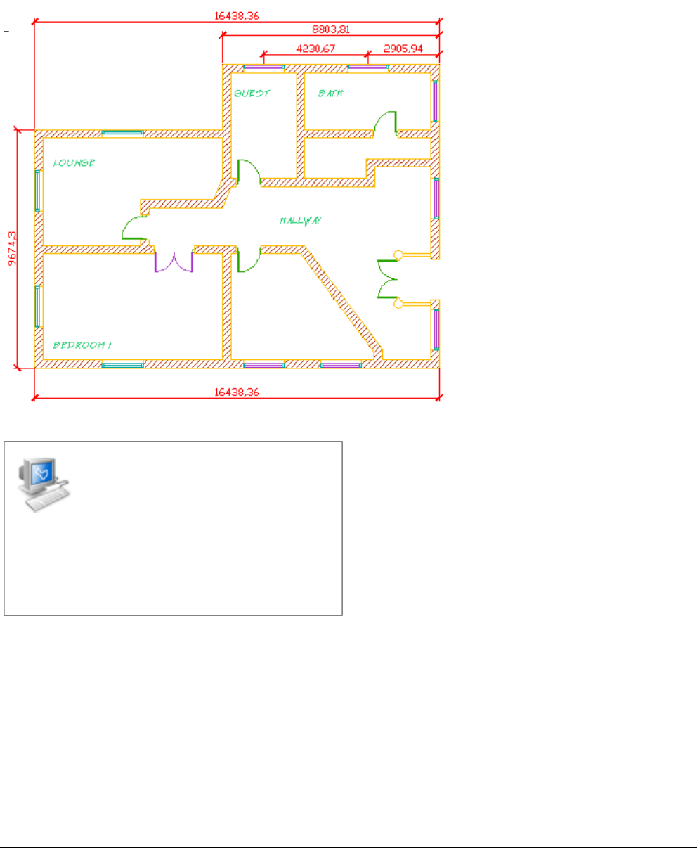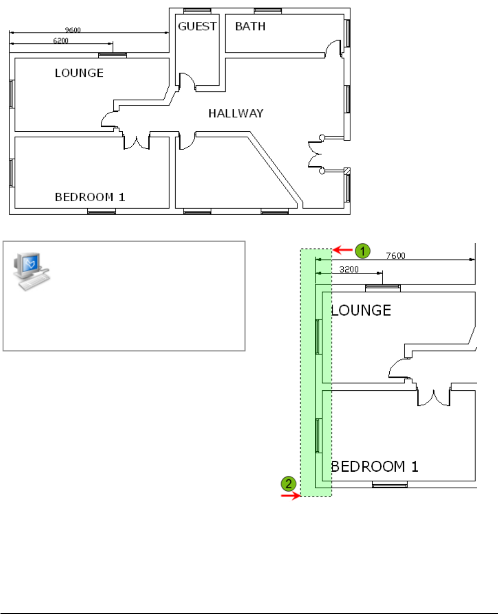 Create the interior walls 124 mm wide on the Wall-Interior layer. The 3 thicker walls are 336 mm. All