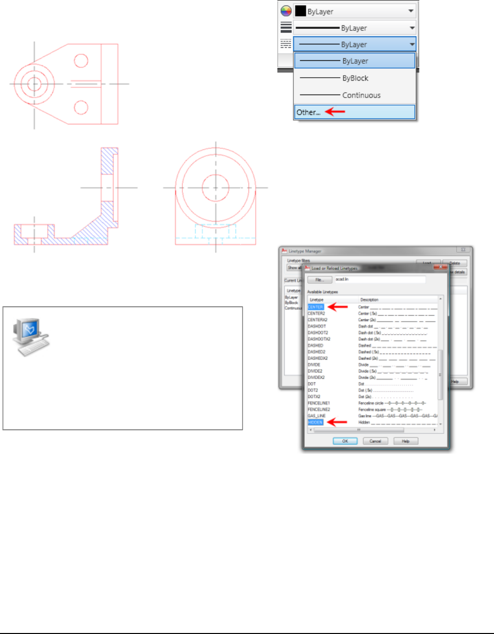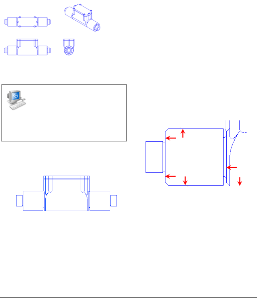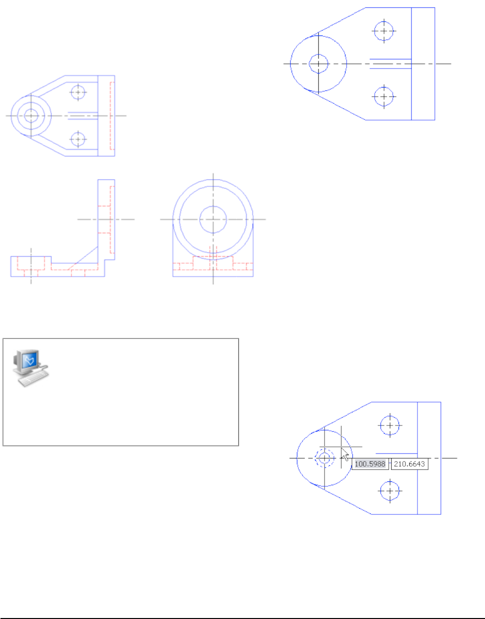 Note: In the following image, the views are closer together than they will appear in your drawing.