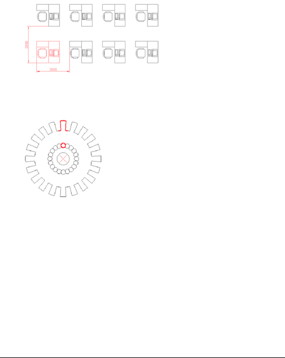 ■Draw a circle around the scaled geometry, then trim the geometry to the circle.