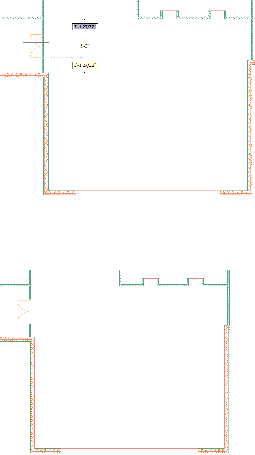 ■Select the lower left endpoint of the wall board that you just placed, enter y (Y flip), press
