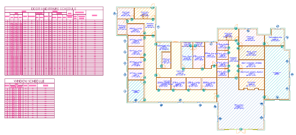 create a presentation plan, a floor plan layout, door and window schedules, a section, and a detail, all within a coordinated