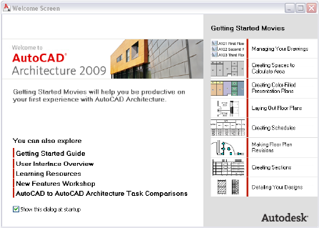 2If this is the first time you have opened AutoCAD Architecture, a Welcome screen displays.