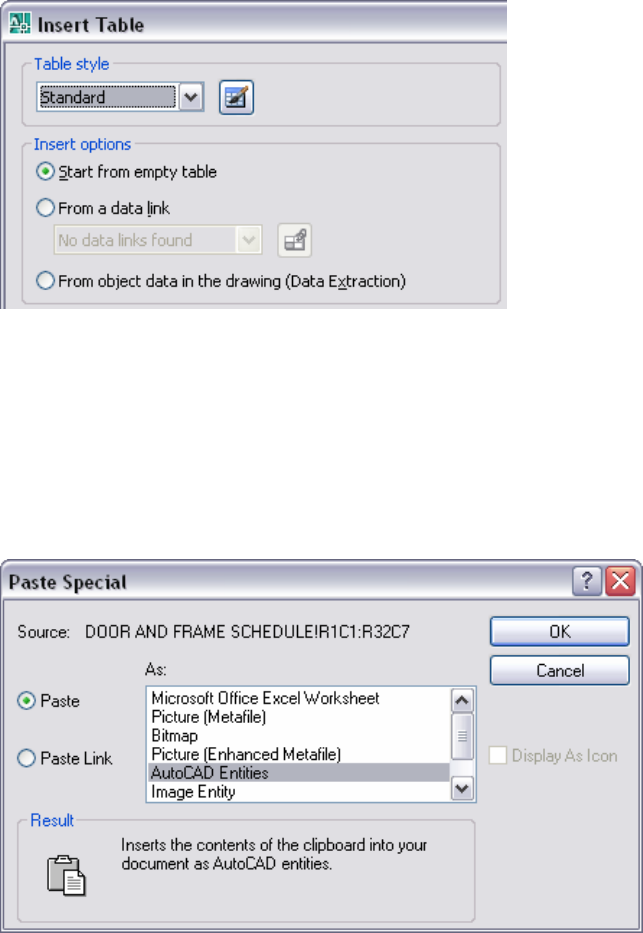 The third option in the Insert Table dialog box enables you to automatically create an AutoCAD table from