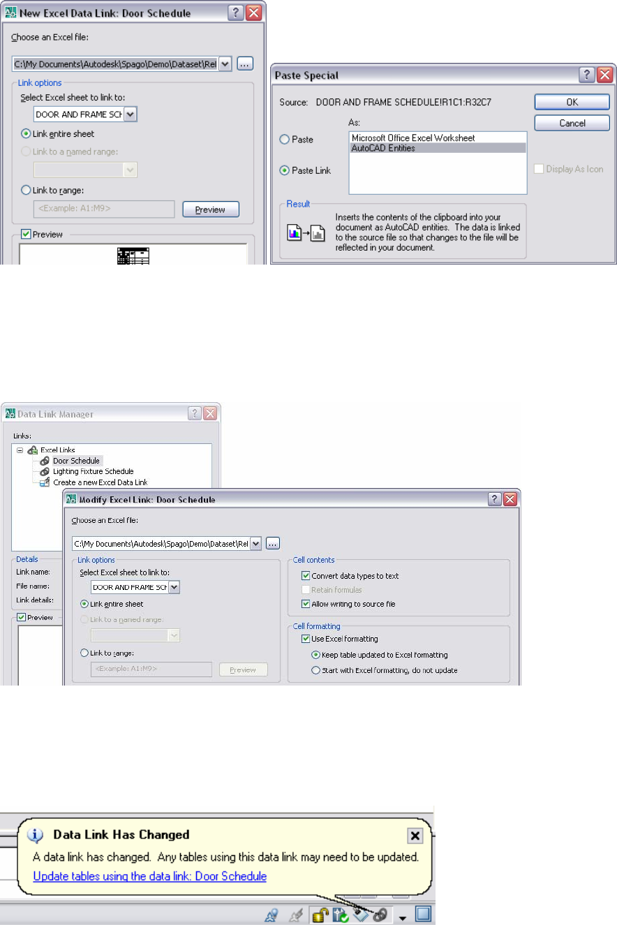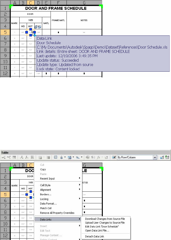 you to update the data link, open the linked file, or detach the data link. If you detach the data link, the table