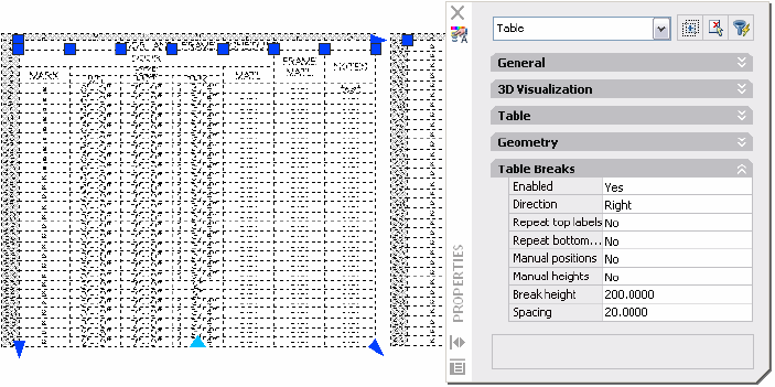 wrapping it across multiple rows. Simply select the table and then adjust it using grips or the new Table break