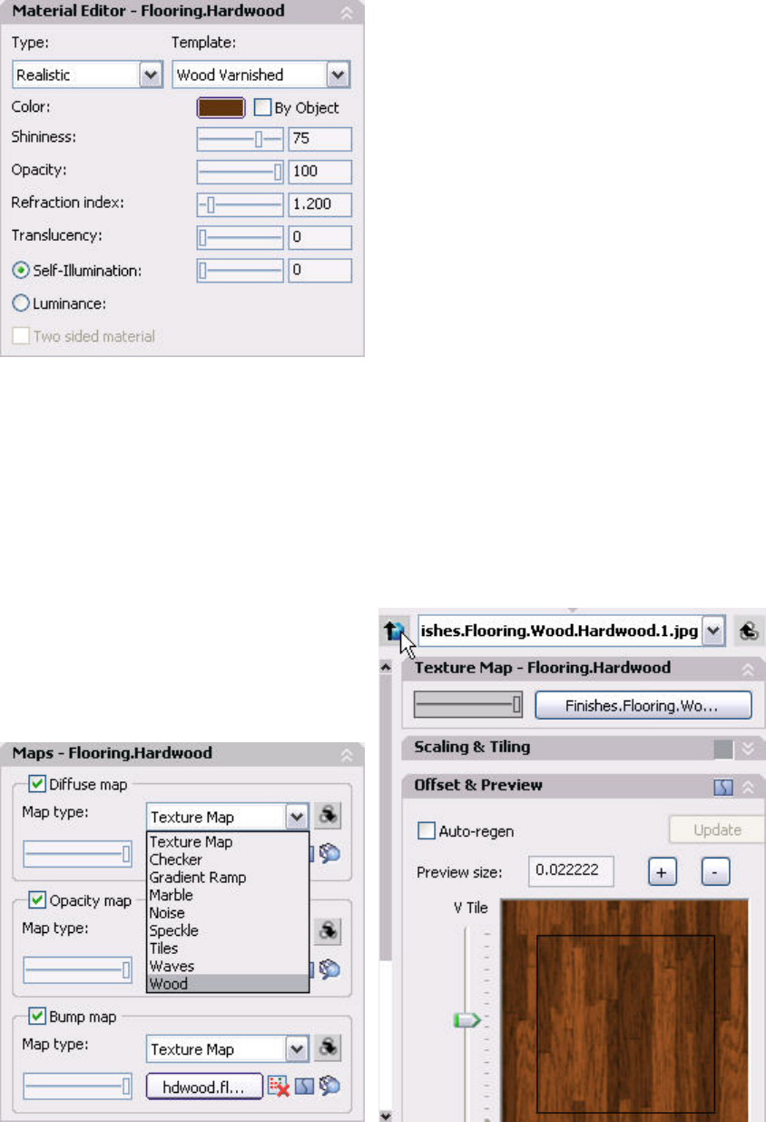 The Maps panel enables you apply diffuse, opacity, and bump maps to a material and you can synchronize any