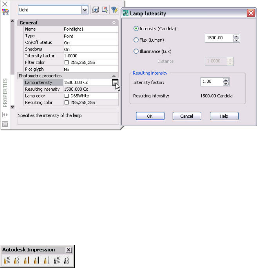 candela, lumen, or lux values to adjust the lamp intensity. Photometric properties are accessible from the