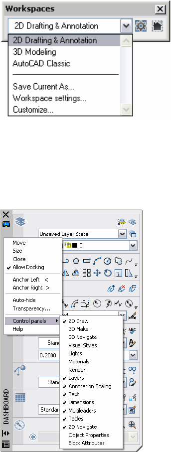 A new 2D Drafting and Annotation workspace has been added to the list of predefined workspaces. Selecting