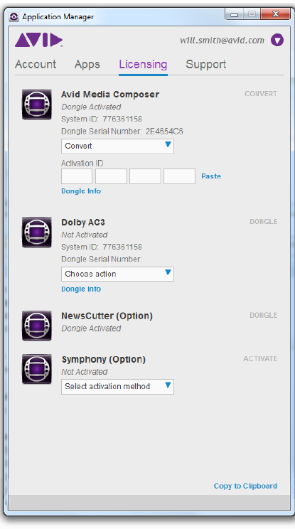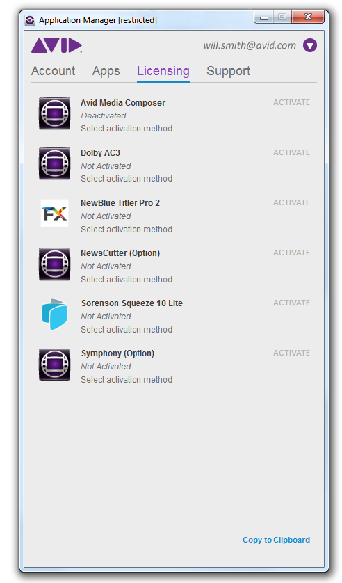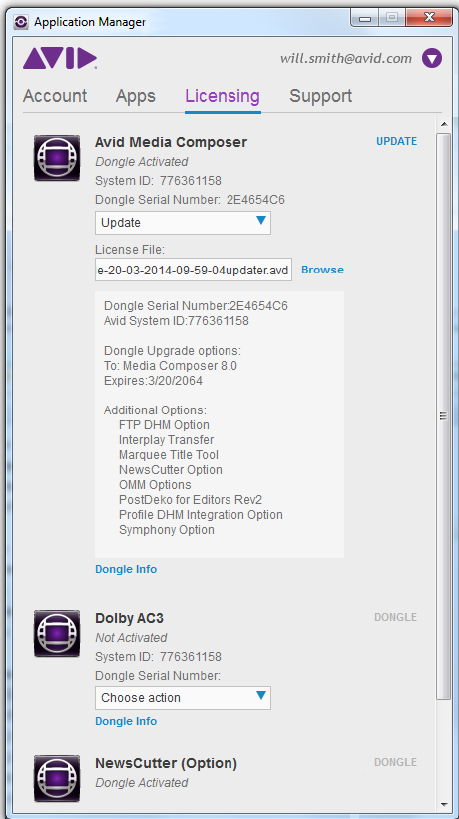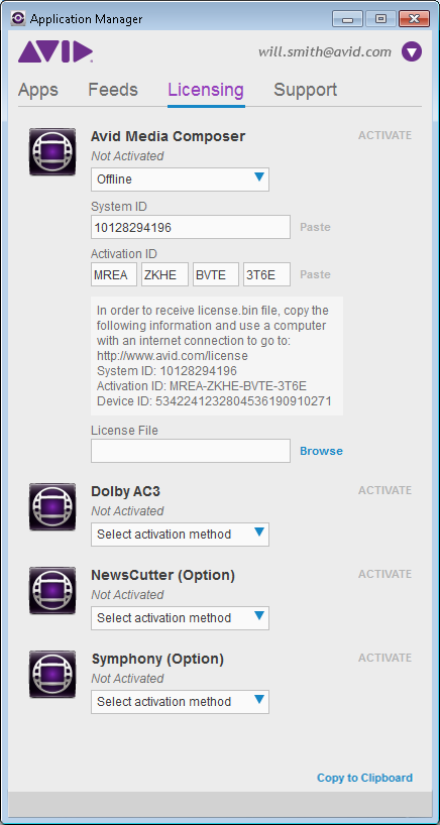 the Avid Editing Application, activation codes are included in your Avid Account. If you are
