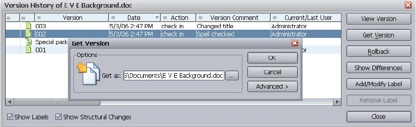 retrieving older versions 293