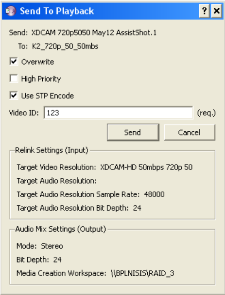- Performing a Send to Playback as a Background Process from Interplay Assist