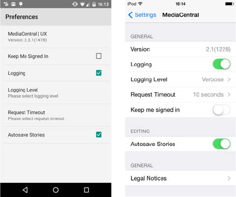example below, the Android app is pictured on the left and the iOS app is pictured on the