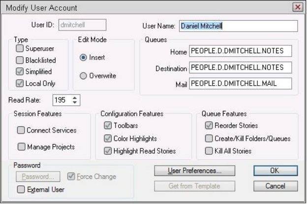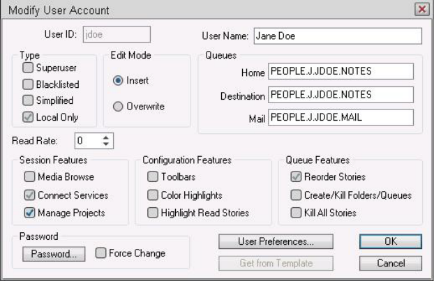 User manager, creating account 93