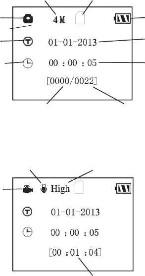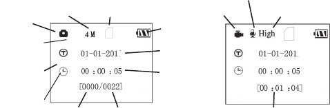 Photo mode (still camera icon), and the UP key can set the camera to Video