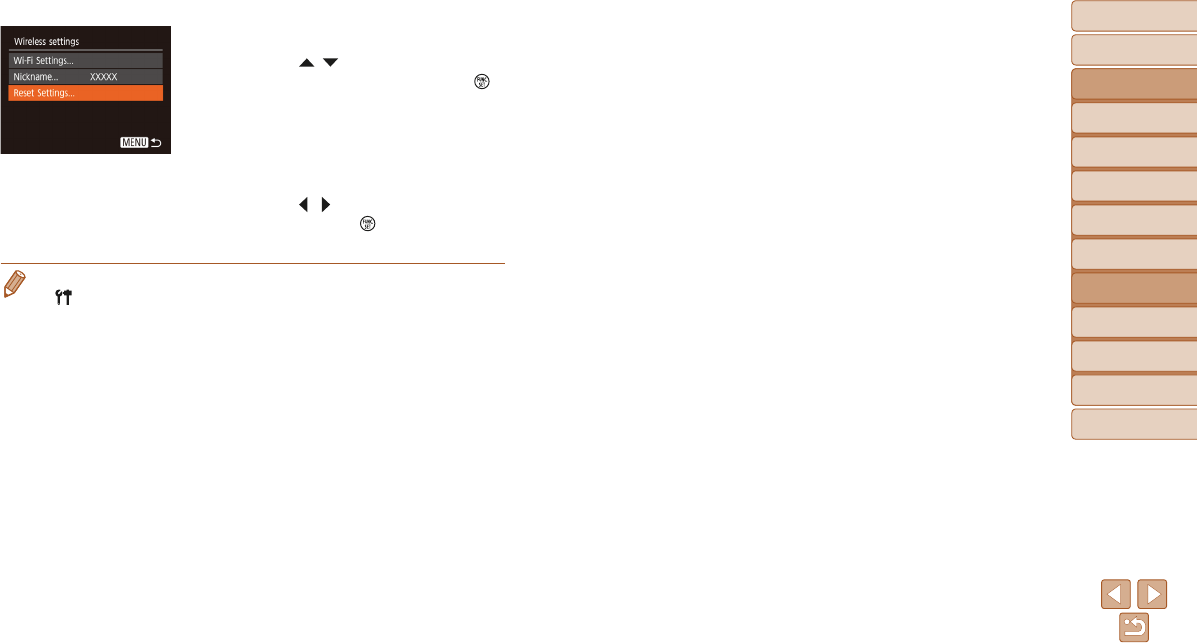 • Erase registered Wi-Fi security information by choosing [Reset Settings]