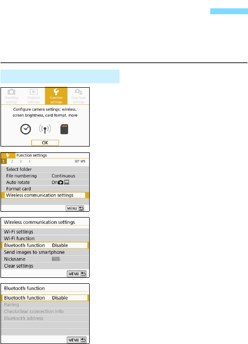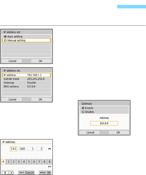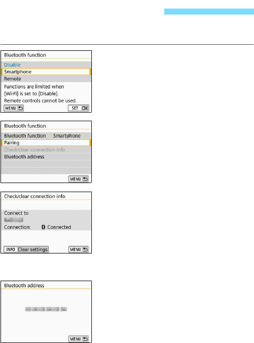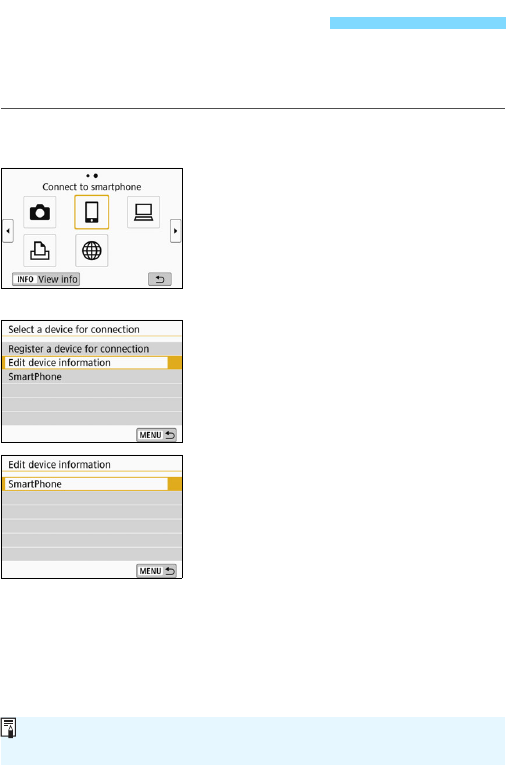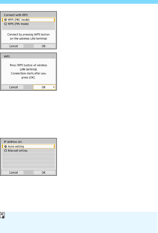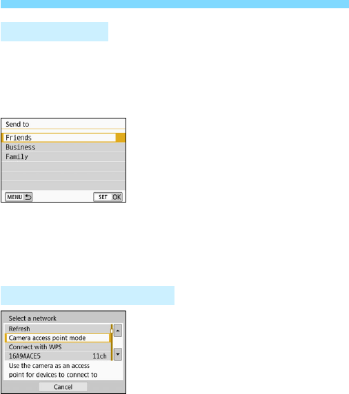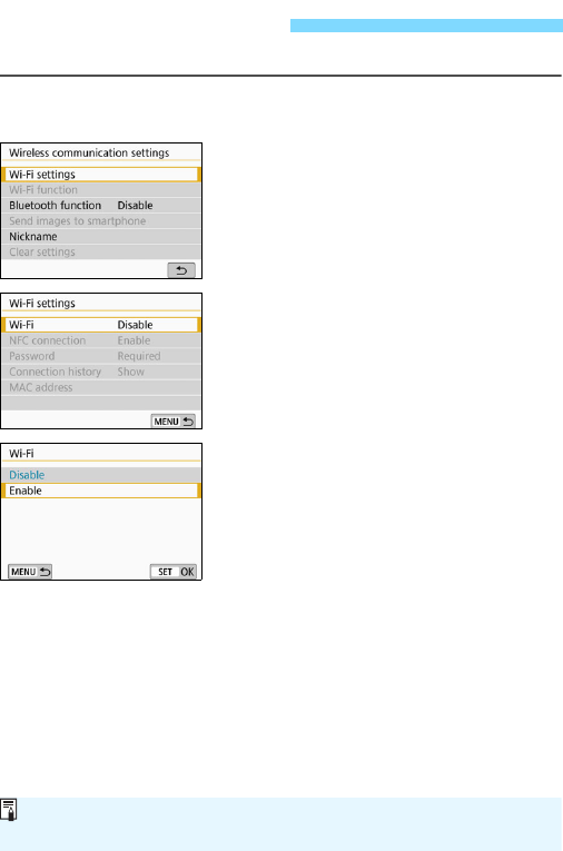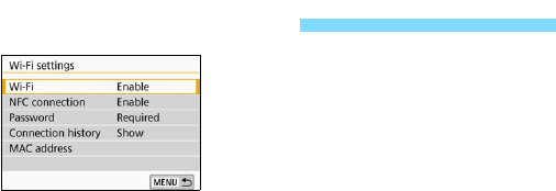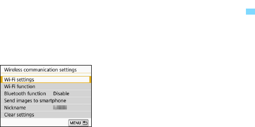 the Wi-Fi function menu with the <k> button. For details, see the