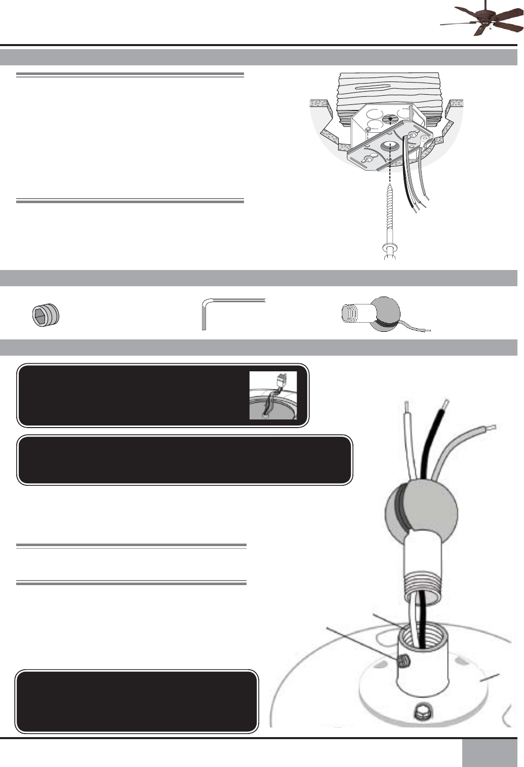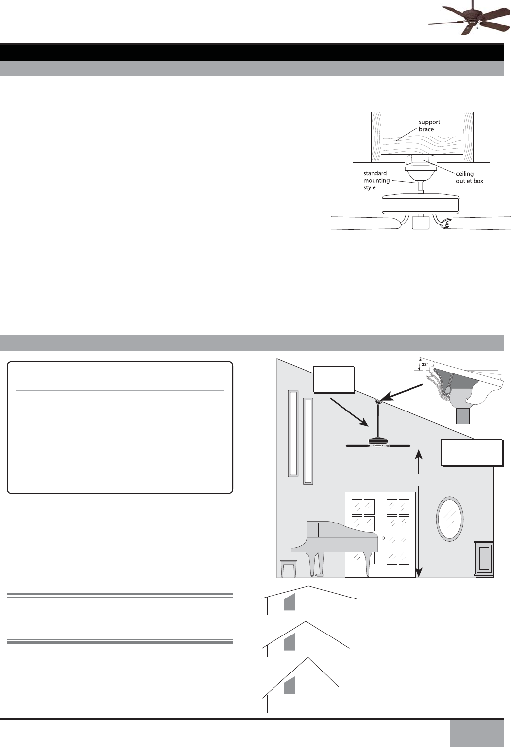 • This fan is designed to be installed on an existing electrical outlet box. The outlet box must be UL Listed for ceiling fan