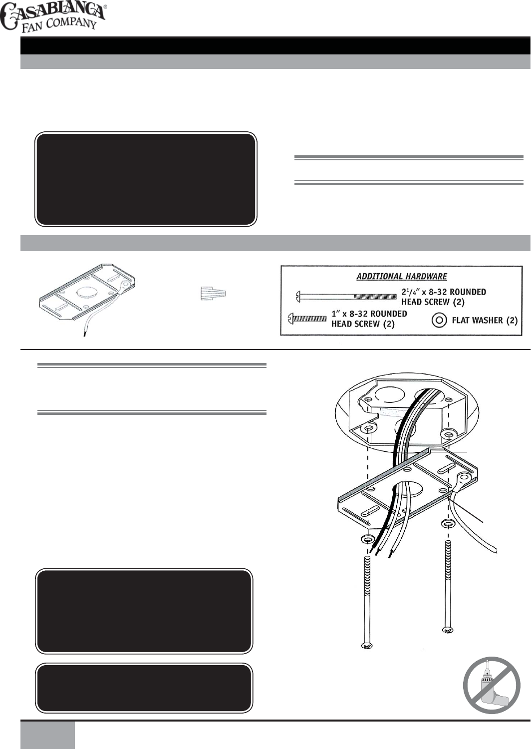 installations. If it is not, a new box must be installed. Casablanca extension poles are available for sloped or high ceiling