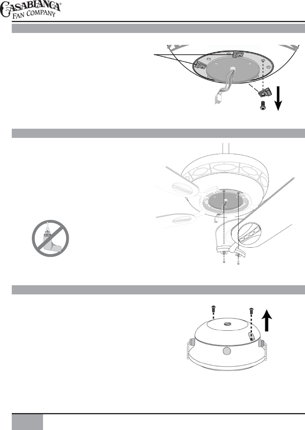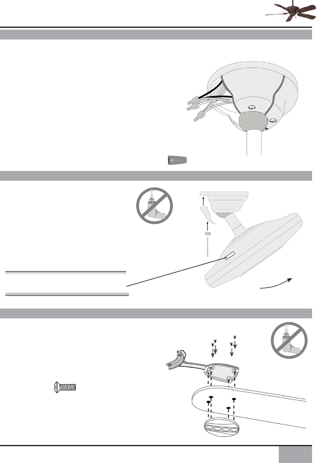 • WARNING: Do not bend the blade brackets when installing the brackets, balancing the blades or cleaning the fan. Do