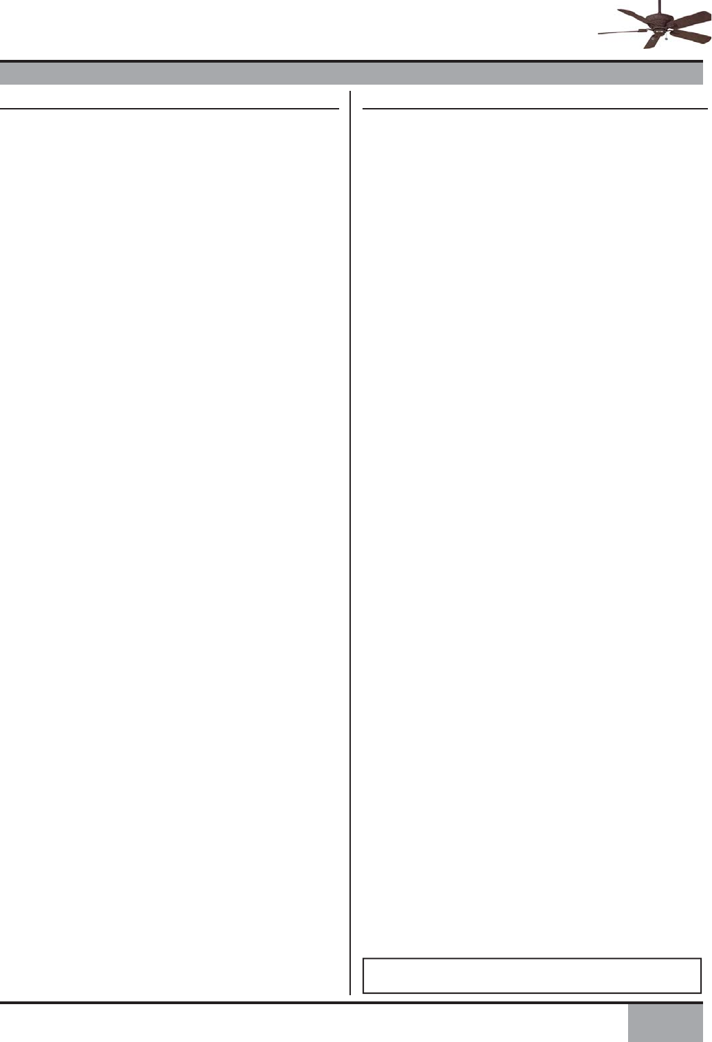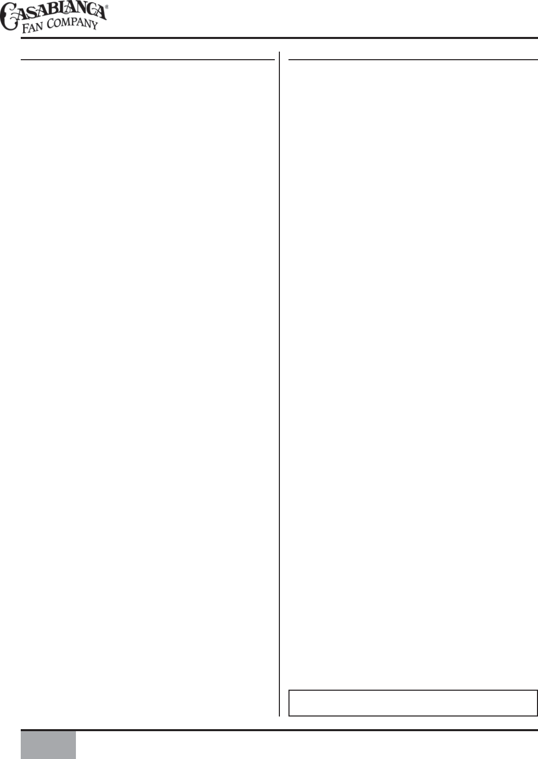 installation; therefore, before attempting to install and operate your Casablanca fan, read this owner’s manual completely