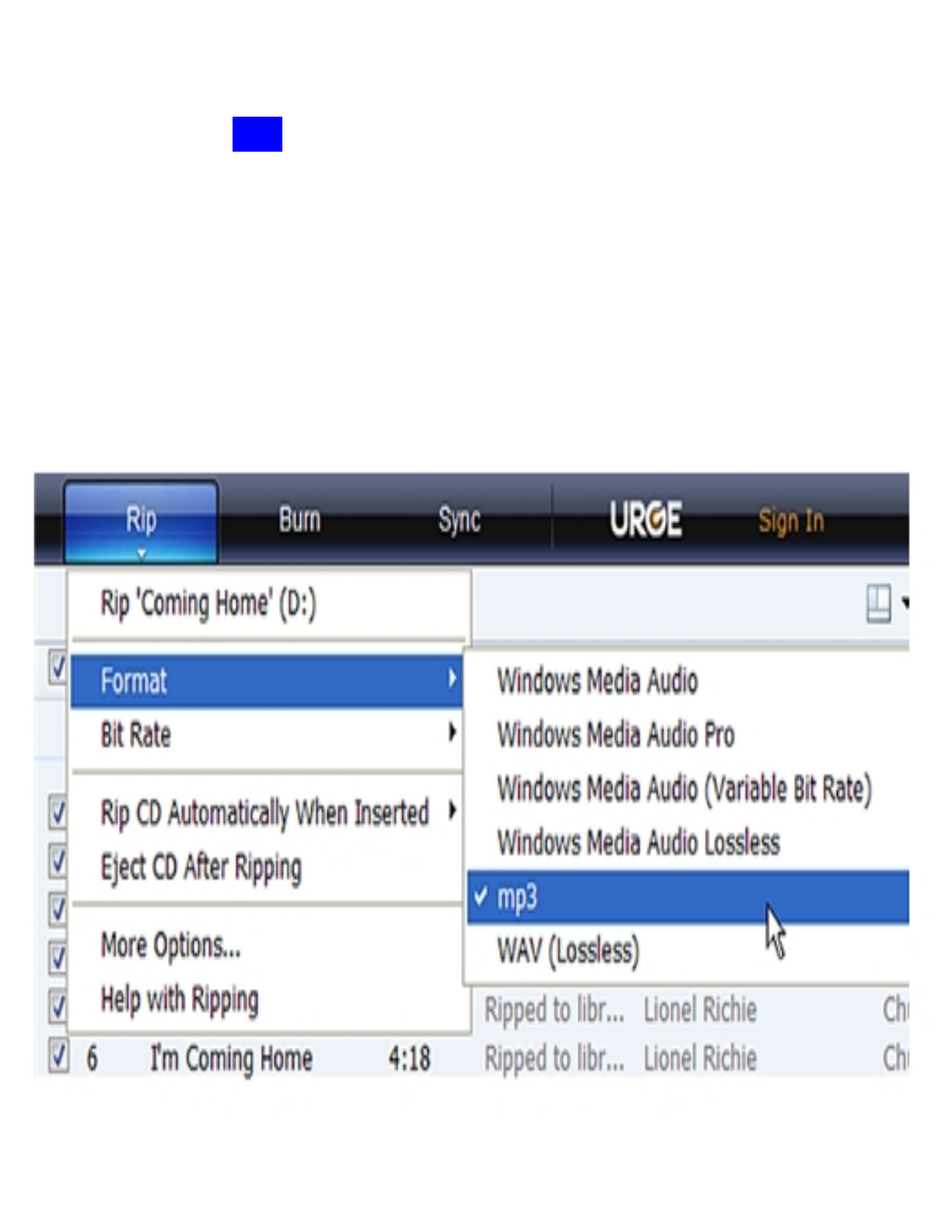 Select “Bit Rate > 128 Kbps”