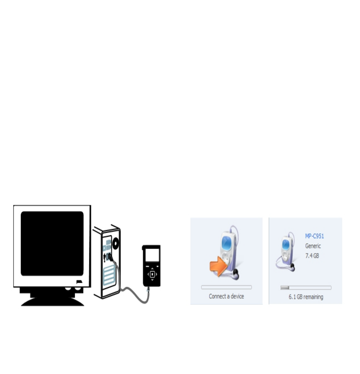 2) Connect your COBY player to a USB port on the computer.