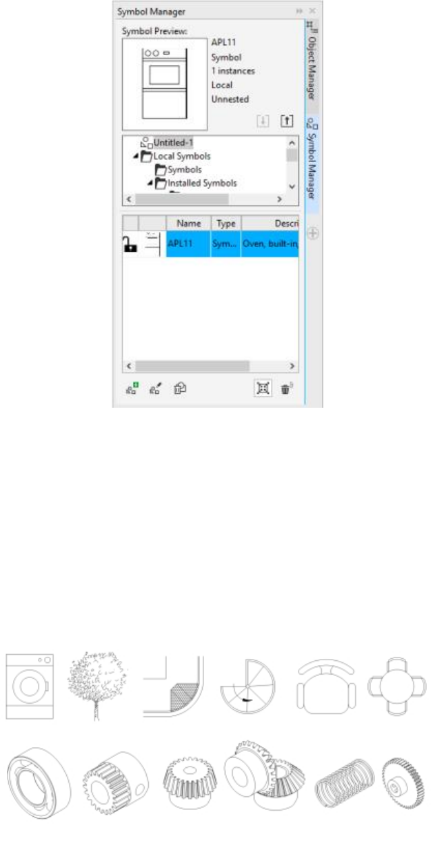 A hierarchical view of folders, sub-folders, and files. In the Symbol manager docker, the tree shows the current document at the top,