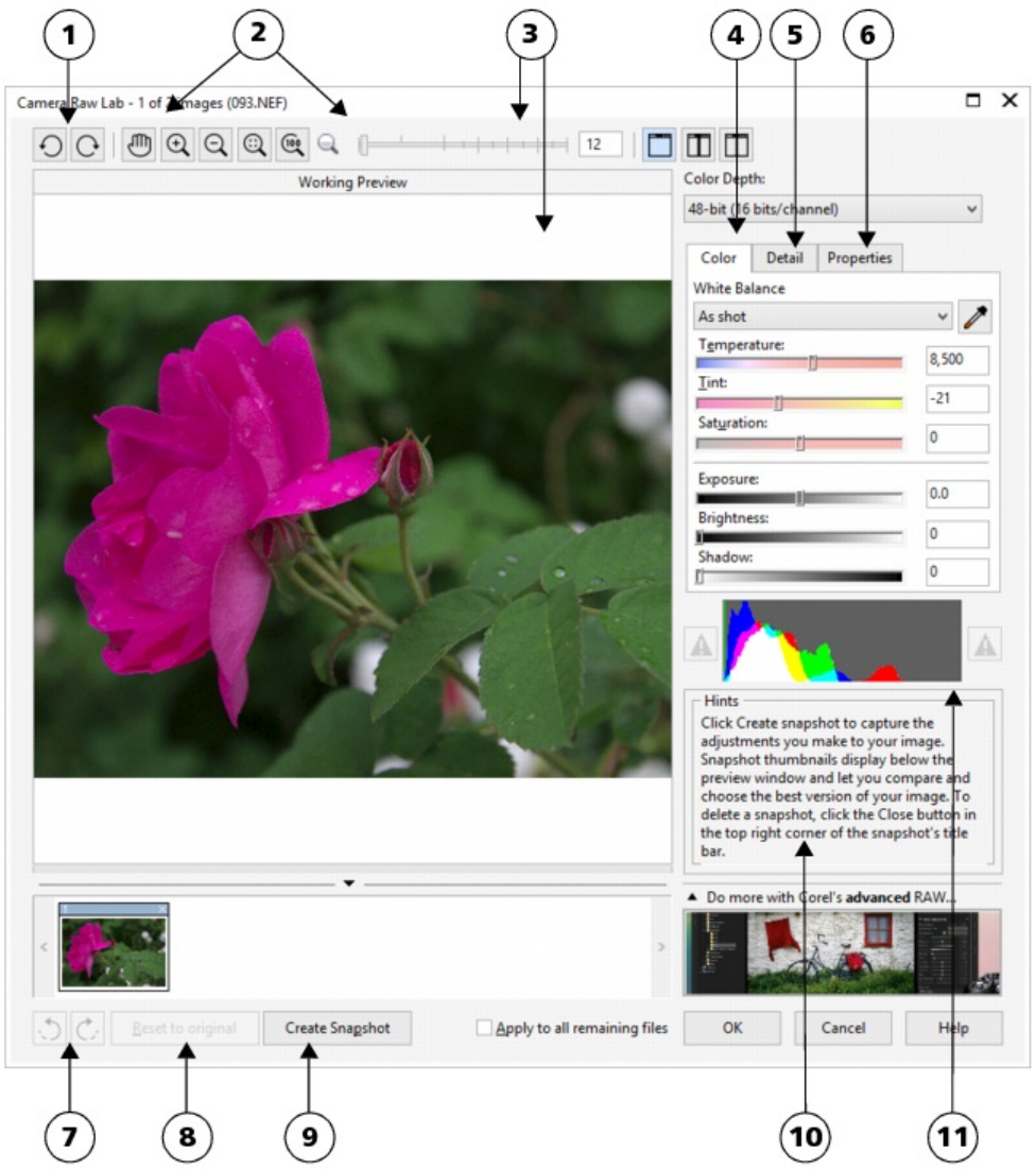 In image correction, the white point determines the brightness value that is considered white in a bitmap image. In Corel PHOTO-PAINT, you