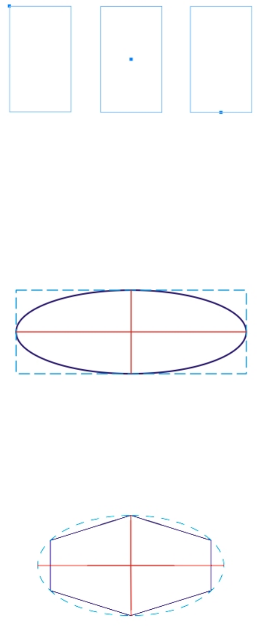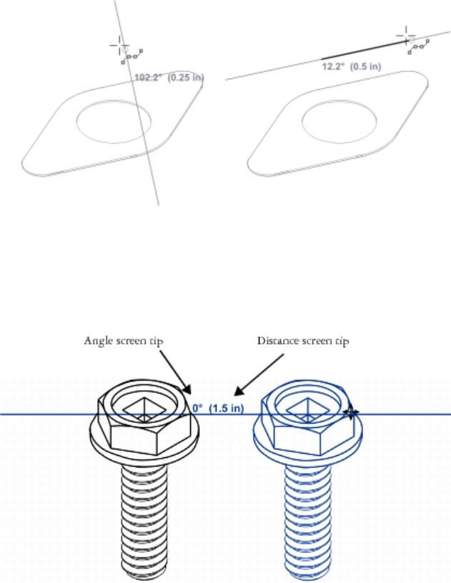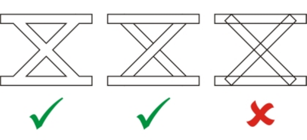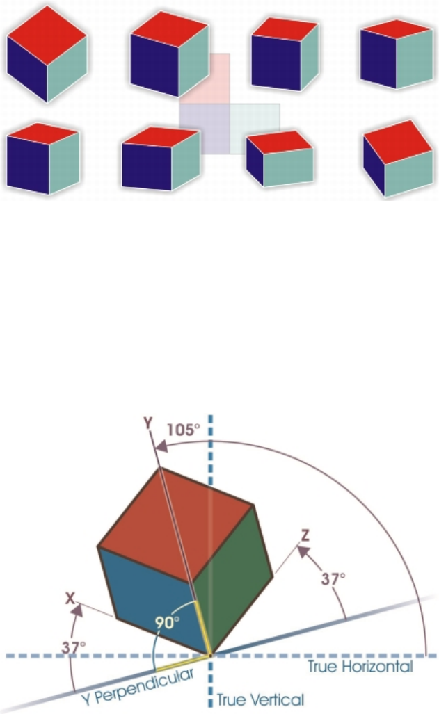 extrusion). In both cases, the vanishing point is indicated by an X.