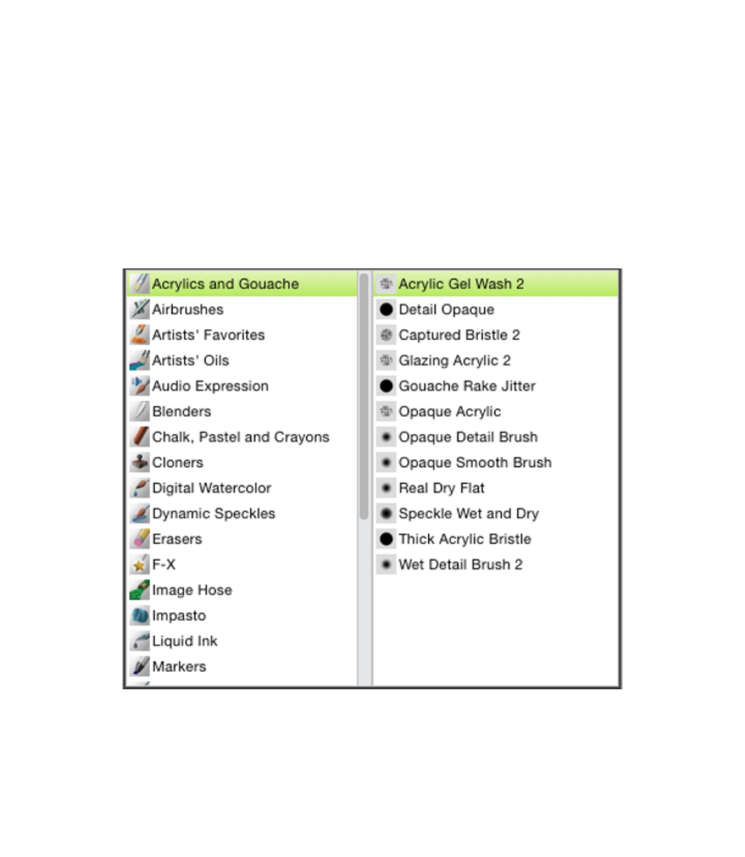 that are designed with the real media in mind, so you can predict how a brush will behave. Corel Painter brushes can paint or draw with any