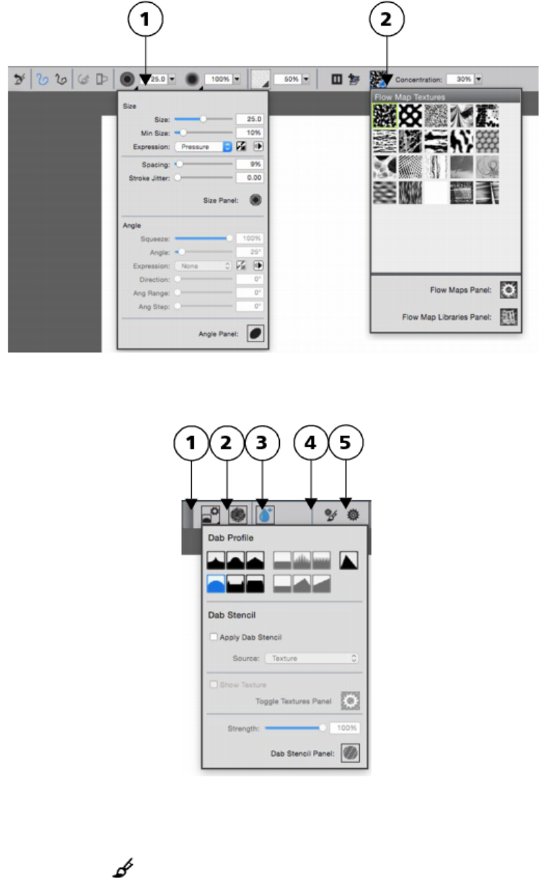 greater control over the look and feel of your brushstrokes. For more information, see “Dab Stencil” in the product Help.