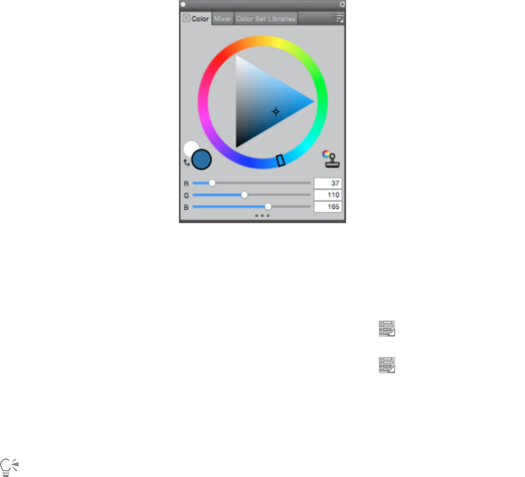 3To change the color, on the Color panel, drag the Hue Ring to display the range of colors you want, and click the Saturation/Value