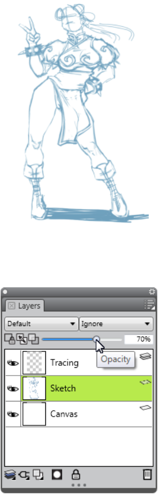 6Select the Sketch layer, and move the Opacity slider to 70%.