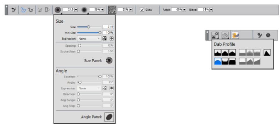 you paint and link Dab Stencils to a variety of real-time stylus input factors. Using them with the new Texture Brush variants gives you even