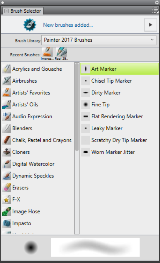 2From the Brush Selector bar, choose a brush category, and then choose a brush variant.