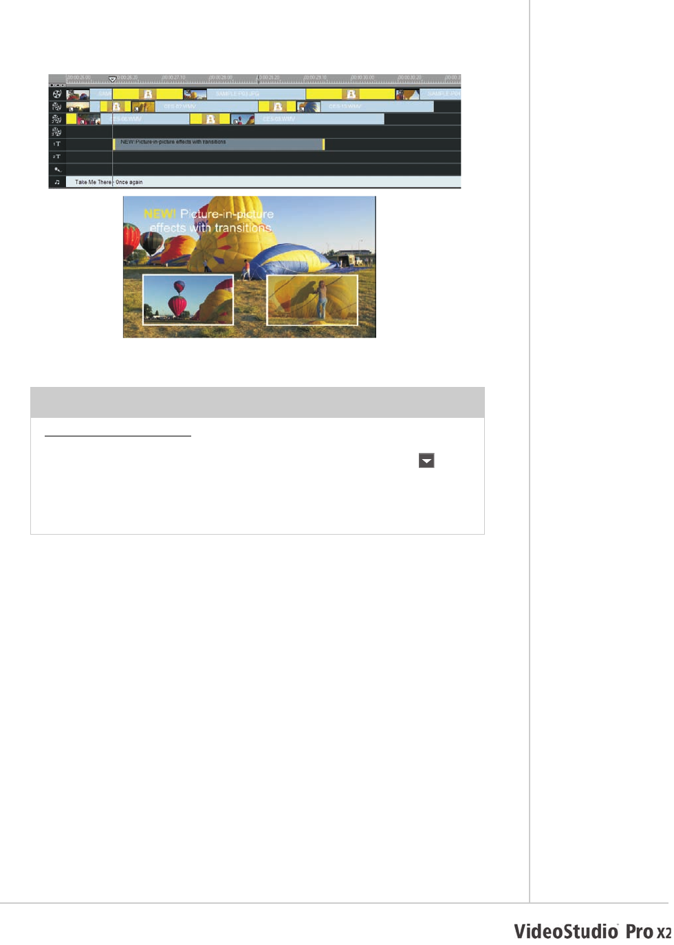 tip. Users can easily create sophisticated picture-in-picture and montage effects,