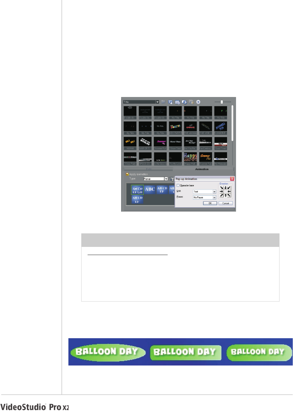 • Experiment with the 10 new animation presets for titles.