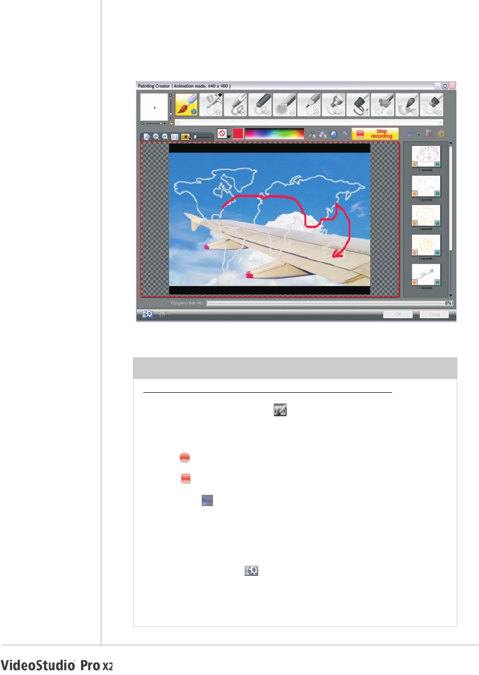 • Record drawing, painting, or writing strokes as an animation to overlay on