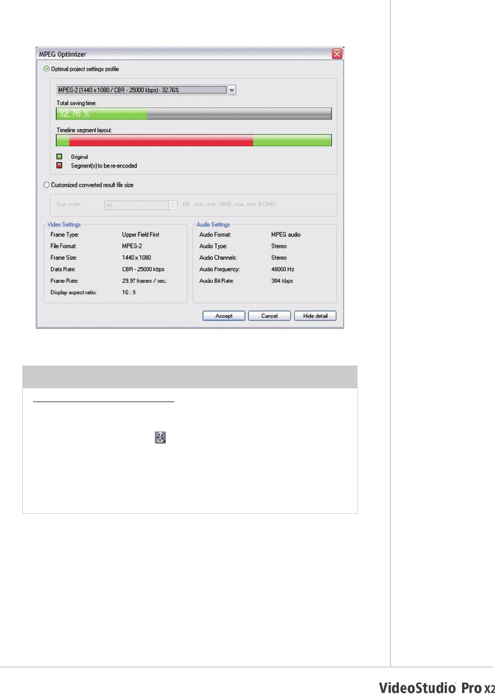 3In the MPEG Optimizer dialog box, click Show Detail, and review
