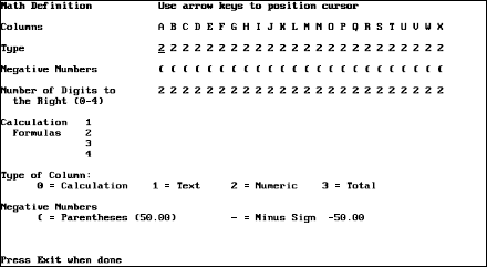 Columns, Display ............................................. 56