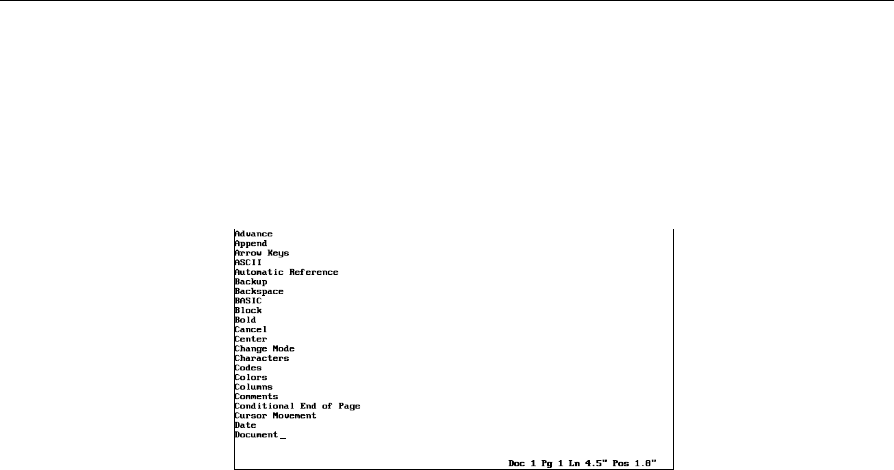 WordPerfect features, alphabetical list