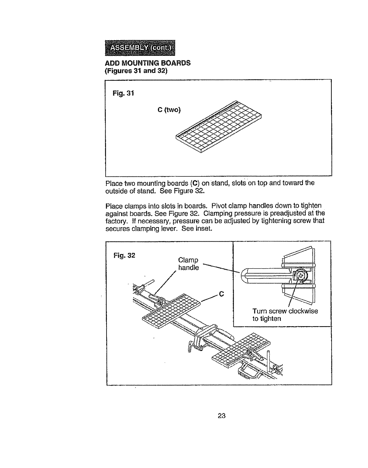 6. BE SURE the board clamps are tightly clamped to the stand when the