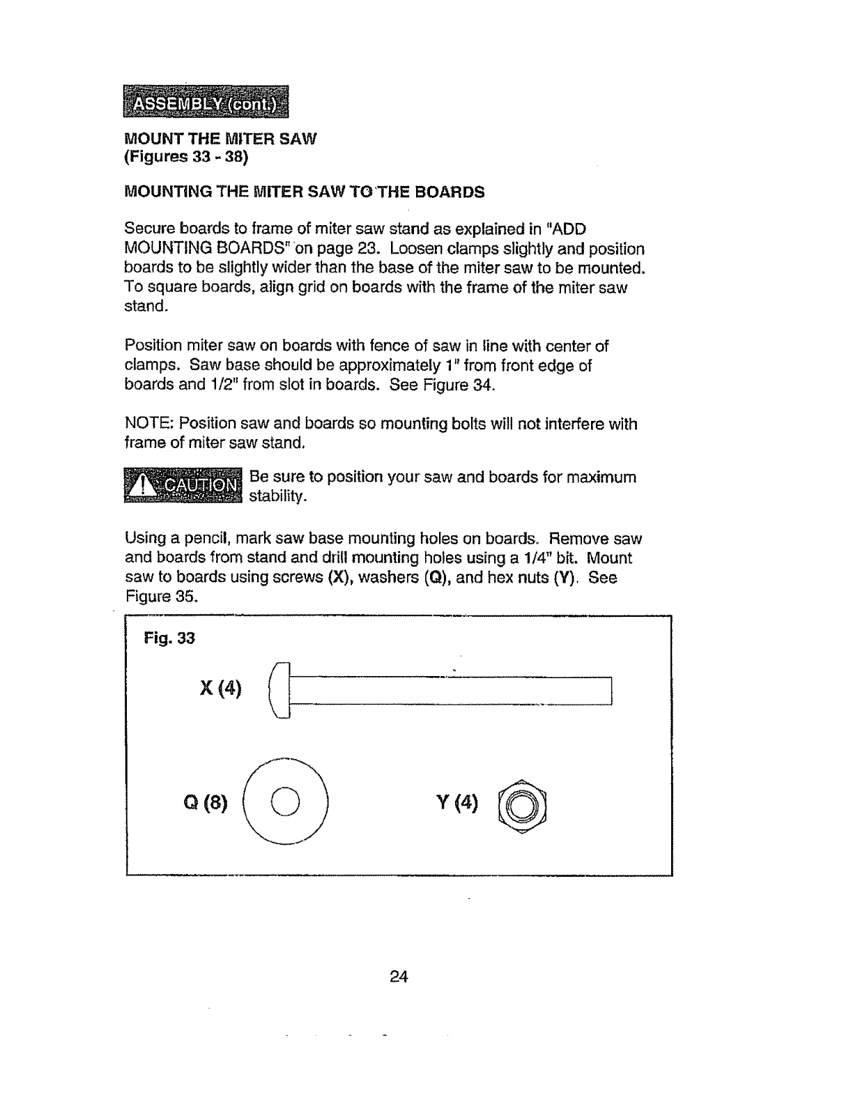 saw stadd until the miter saw is fastened firmly to the boards.