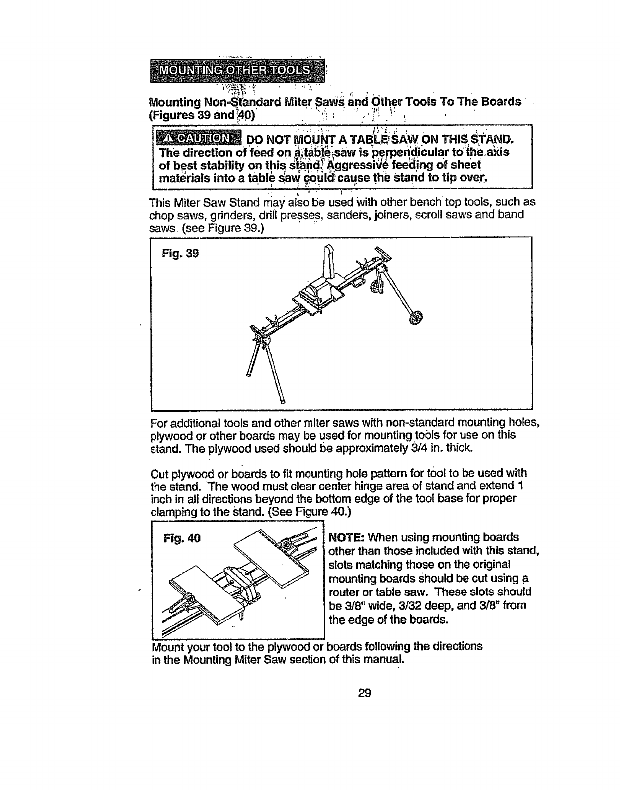 9. DO NOT mount a table saw onto this stand. The direction of feed on a