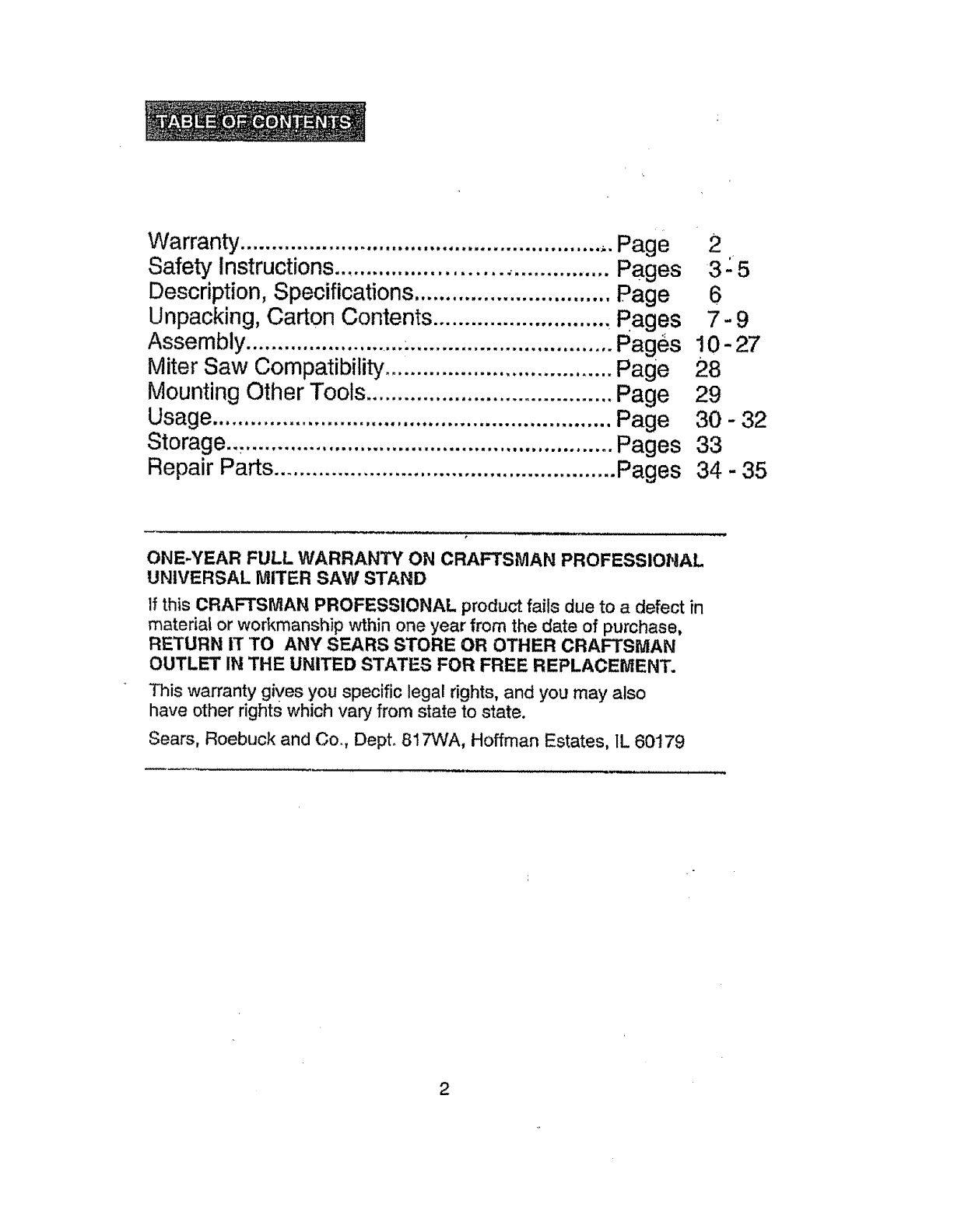 Craftsman 69522302 User Manual MITER SAW STAND Manuals And Guides L0905161
