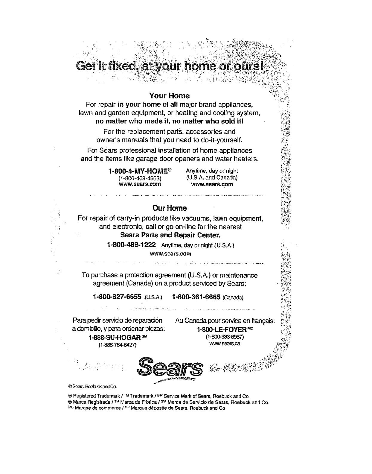 ® Ragistered Trademark l"rMTrademark /s_ Service Mark of Sea_, Roebuck and Co.