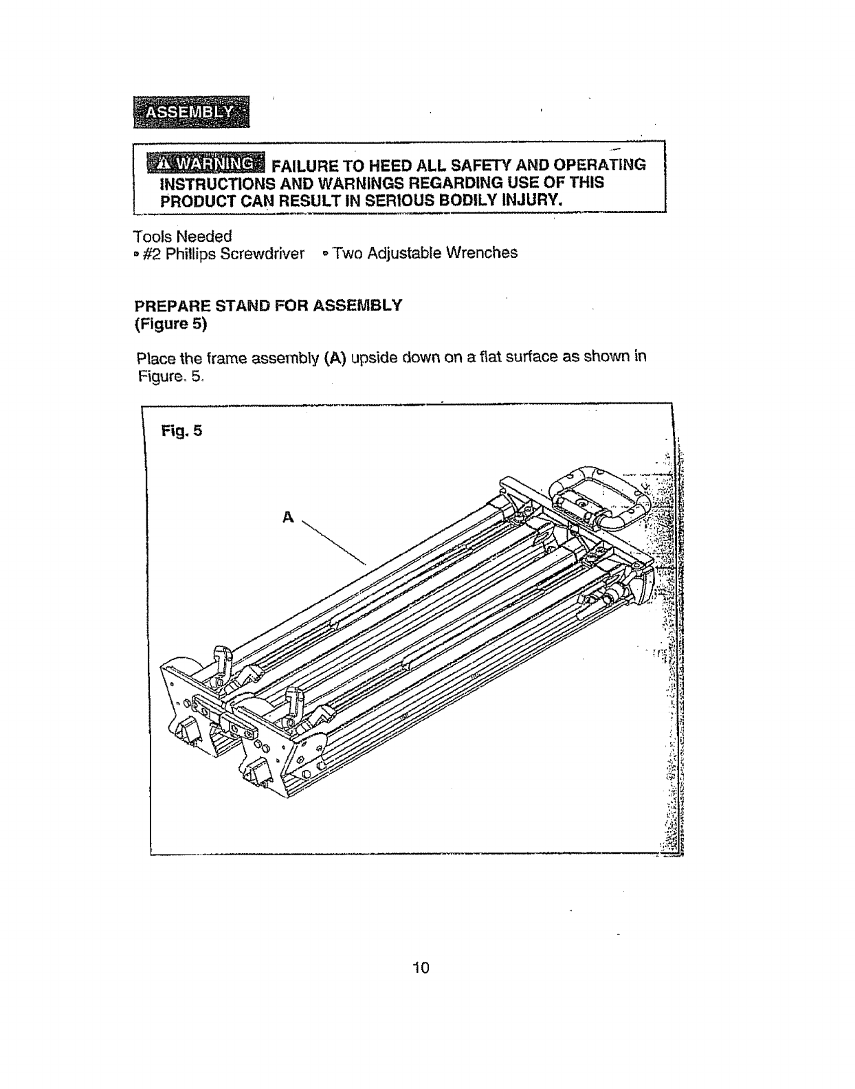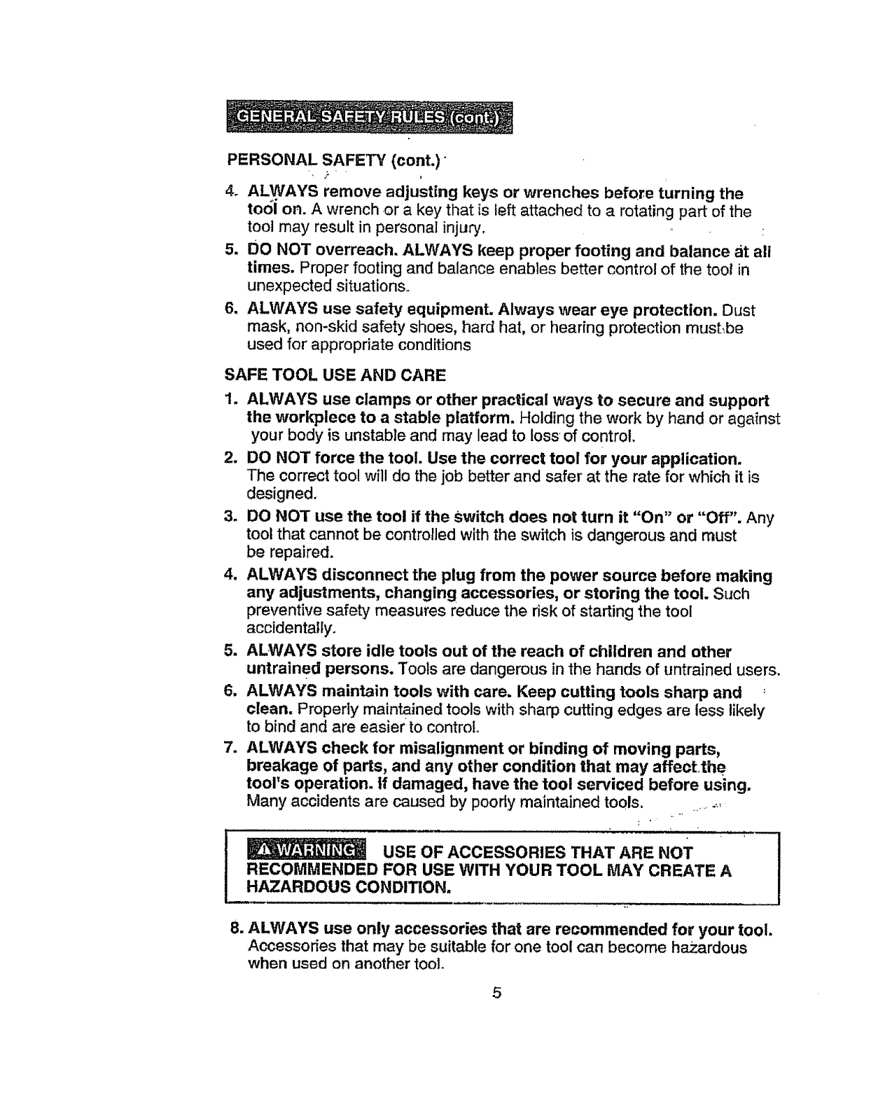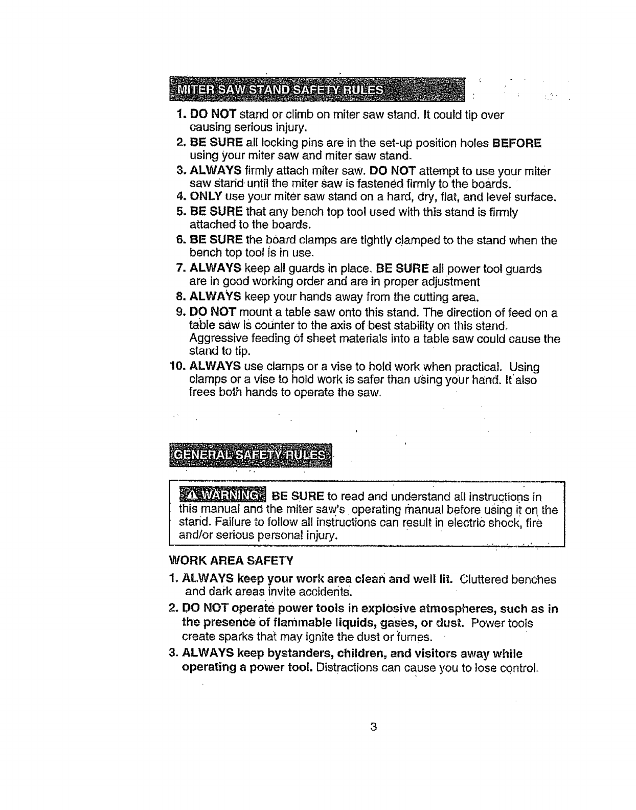 5. BE SURE that any bench top tool used with this stand is firmly