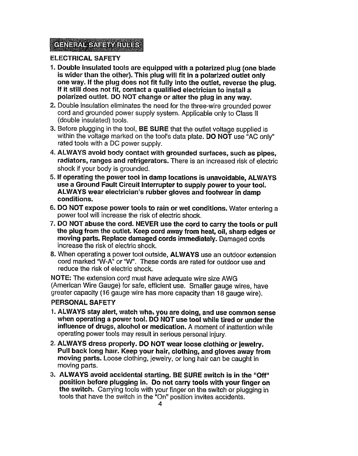 1. Double insulated tools are equipped with a polarized plug (one blade
