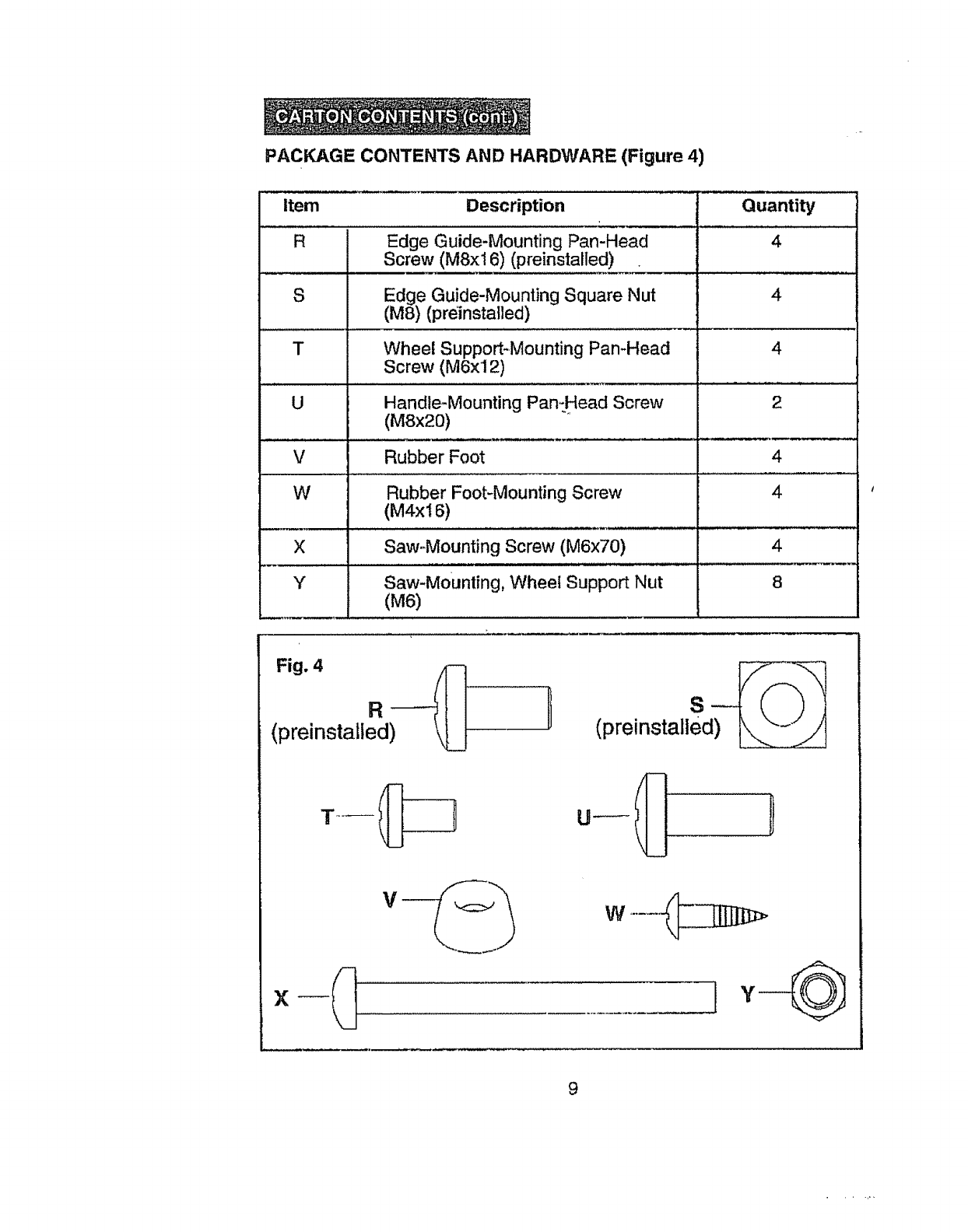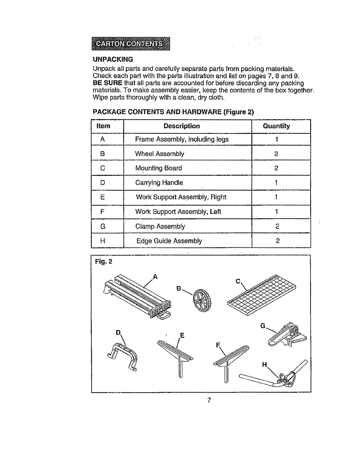 Unpacking, Carton Contents ........................... .