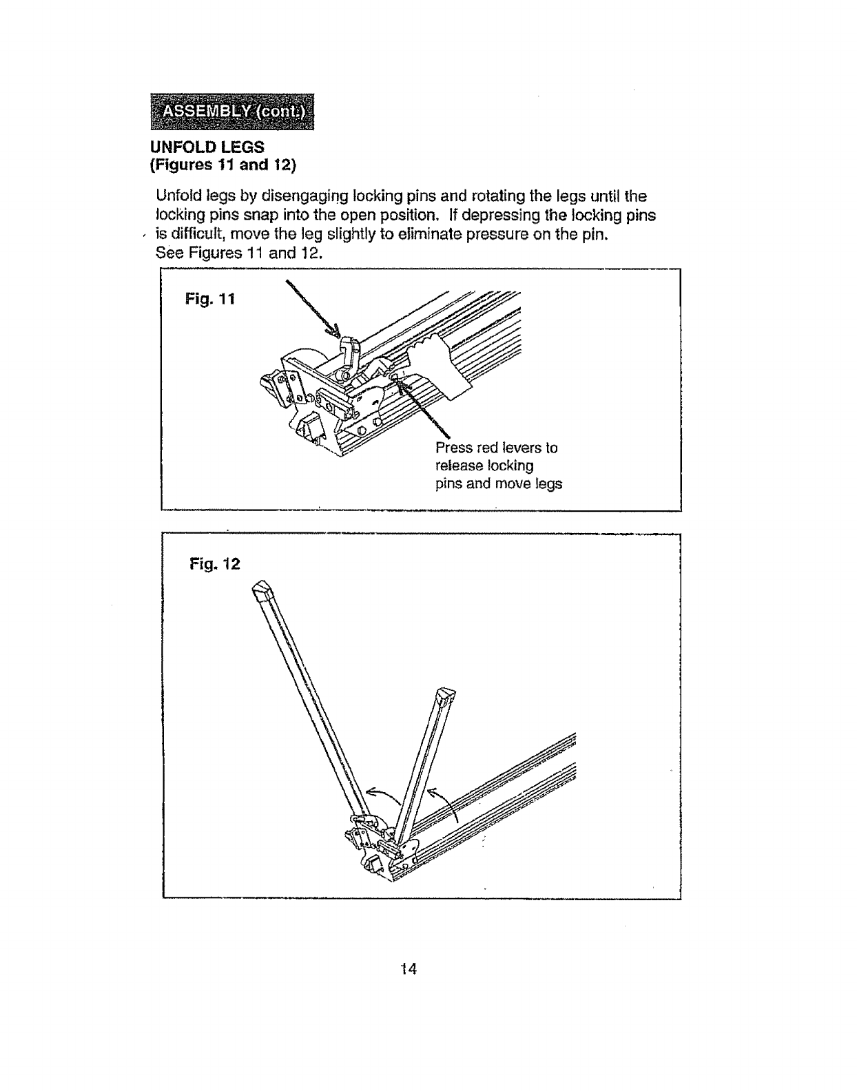 2. BE SURE all locking pins are in the set-up position holes BEFORE